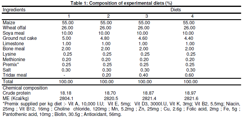 The study was carried out at the Poultry unit of Dan-malafia Farms, Ibadan, Nigeria.