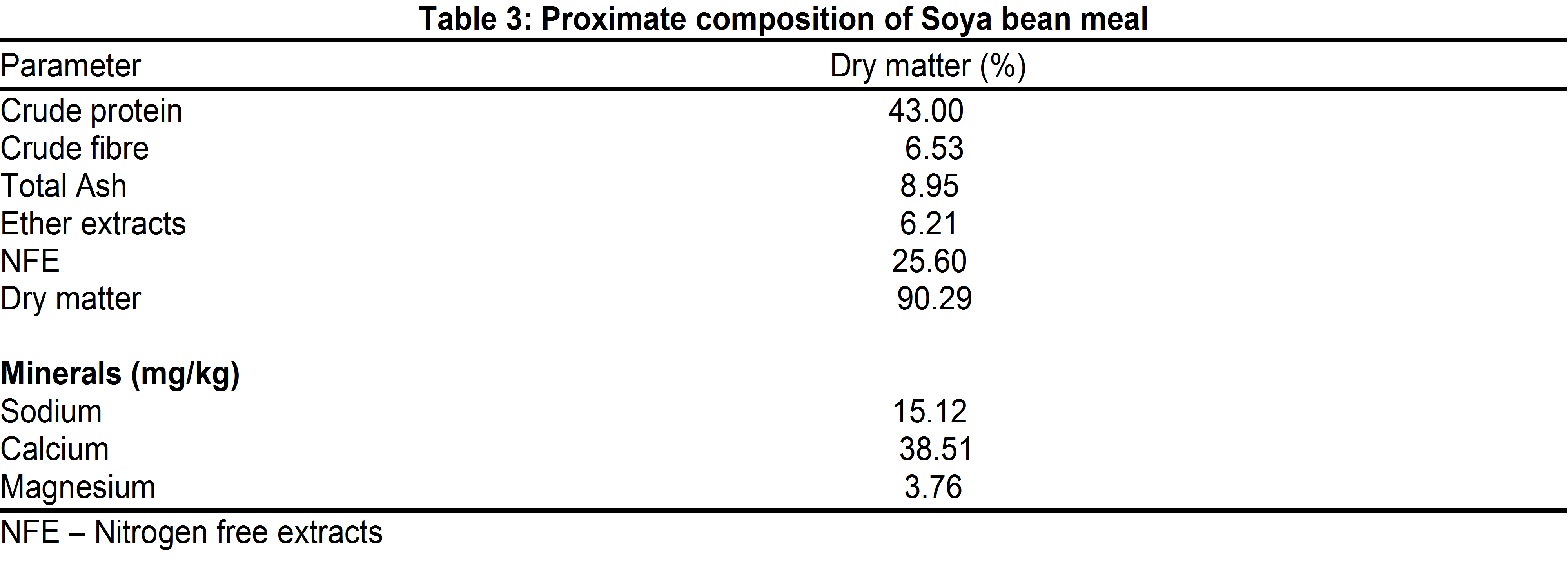 Modern livestock production is faced with the challenges of producing high quality animal protein at low prices; there has also been an increase in the prices of conventional protein feedstuffs due to competition among ingredients used in the manufacture of animal feed. There is consequently a great need for alternatives that can supply in high demand for such ingredients, in particular for soya bean meal (Chisoro, 2015). Soybean meal is the most commonly used plant protein in livestock feeds but recently, it has become relatively expensive and scarce due to competitive demands in poultry and livestock feeding (Fagbenro et al., 2004). Soybean meal has long been considered an outstanding source of supplemental protein in diets for livestock and poultry. In fact, soybean meal is sometimes referred to as the "gold standard" because other protein sources are often compared to it. It is rich in highly digestible protein, and the protein is composed of a superior blend of amino acids, the building blocks of body protein for livestock and poultry.