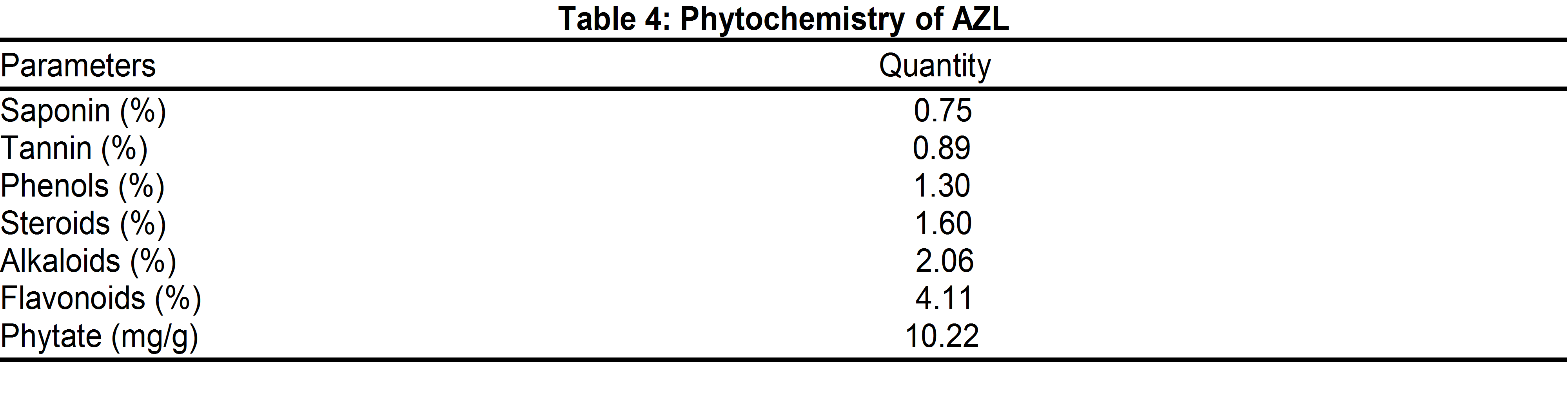 The result of phytochemical analysis of AZL in this current study was also consistent with report of Abraham and Vidhu (2012); Mithiraja et al (2011) and Arai (1998) on the phytochemical constituents of Azolla.