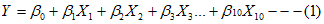 b1 – b10 = coefficients of variables
