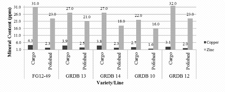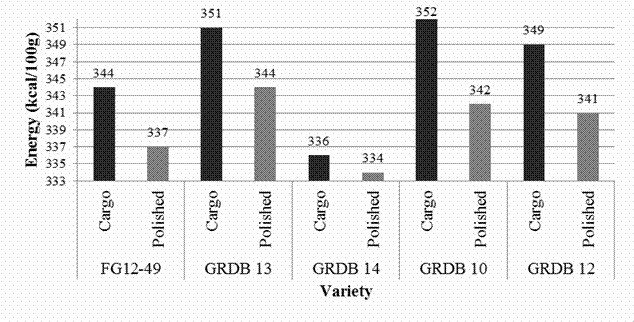 low in both cargo and brown rice for the varieties/lines tested; all polished