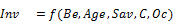 Where, Inv- is investment, Be- is beneficiary of cash transfers, Age- is age of the respondent, Sav- is savings and C- is the consumption level and Oc- is the occupation of the respondent.