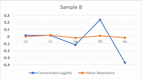 The result show that the concentration of Pb (0.204 µg/ml), Cd (0.022 µg/ml)