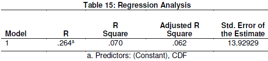 To estimate the influence of CDF on access to secondary education in public schools in the county, a simple regression analysis was done and the results were as shown in Table 15.