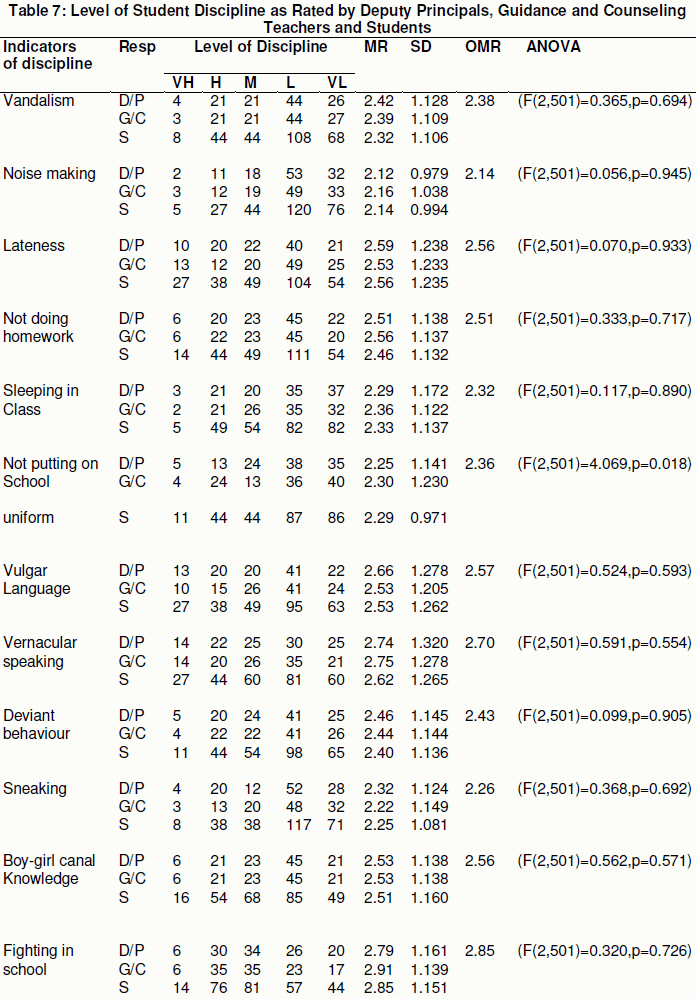Samoei, W.K. (2012). The Role of Guidance and Counseling in Management of Student Discipline in Secondary Schools in Londiani District, Kericho County, Kenya .Unpublished Master’s thesis. Kenyatta University, Kenya.