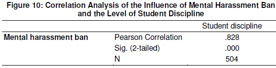 Pearson correlation between the variables; mental harassment ban and the level of student discipline, is 0.828.