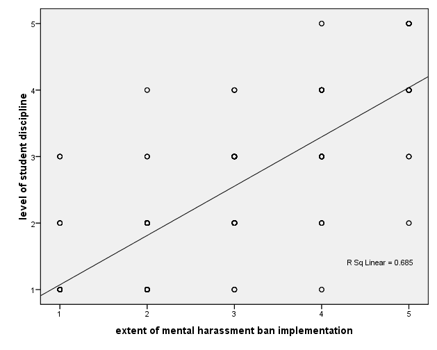 A scatter plot was used to illustrate the relationship between mental harassment ban and student discipline. (Figure 2)