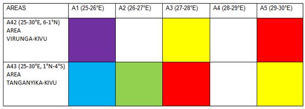 The area located between 25 and 30°E (A42, A43 and A44). However, we notethat the structure of zone A44 (Upemba