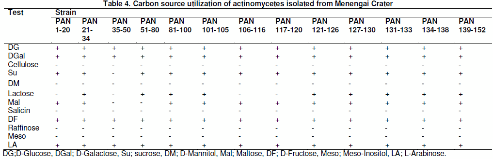 Carbon source utilization of actinomycetes isolated from Menengai Crater