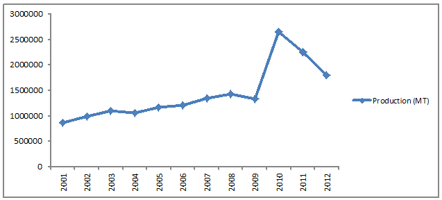 Figure 1: Annual Rice Production (2001-2012)