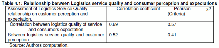It is evident from the research findings that a logistics company, in order to provide high-quality logistics services, must properly understand and assess customer needs and expectations as these forms the basis for quality assessment by the consumers of logistics service. This is so because consumer perception and expectations influences logistics service quality as about 69% correlation exists between the two. Also, logistics service quality significantly affects customer satisfaction.