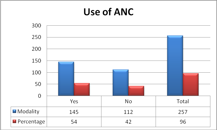 3. Figure 2 shows that of 267 households surveyed, 145 or 54% did not use contraception and (112/267) or 42% used, ten households did not respond on this issue. With Kadutu being an urban environment, this proportion is low. Mamadou Cherif in Guinea (Mamadou, 2008) found the opposite results while his study population was urban. It is essential to continue with awareness on FP because the level of use of contraception is one of the indicators by which to judge the success of FP programs.