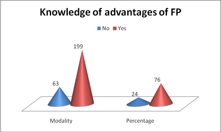 Figure 4 shows that 76% of respondents are aware of the benefits of FP and the remaining 24% do not know. This large percentage of respondents that knows the advantages ought to influence the utilization of FP methods, but it is a paradoxical situation.