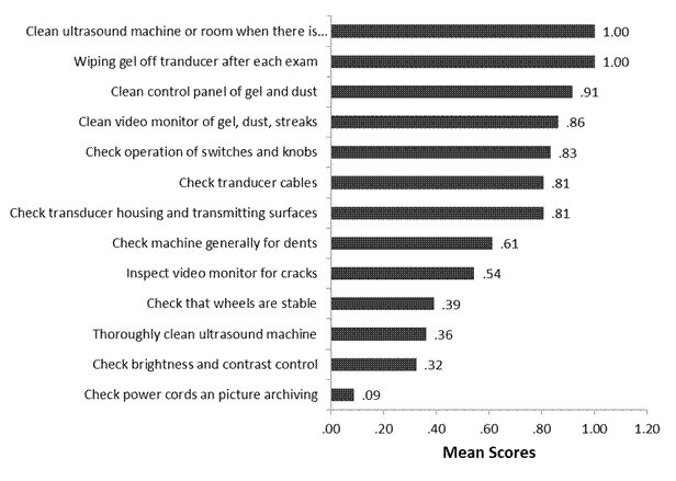 (86.1% - 100%) to infection control QC tasks of cleaning transducer, console and monitor of gel and
