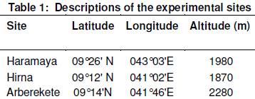 The field experiment was conducted under rain fed conditions in 2012 at Haramaya, Hirna and Arberekete; in Eastern Ethiopia. The latitude, longitude and altitude of the experimental sites are indicated in Table 1.