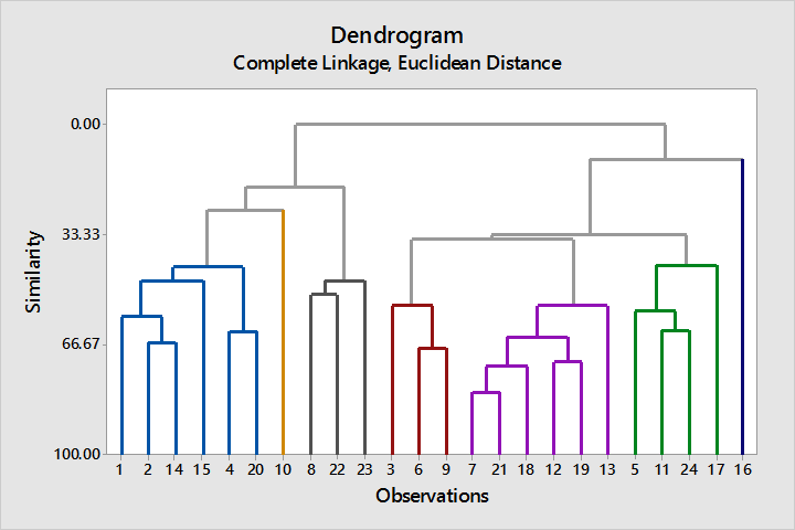 Figure 1. Dendrogram shows relation among the of 24 genotypes of soybean based on average linkage and Euclidean distance using the mean of 18 quantitative traits