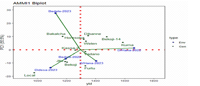 yield (978.9 kgha-1) was obtained from local check. The combined AMMI