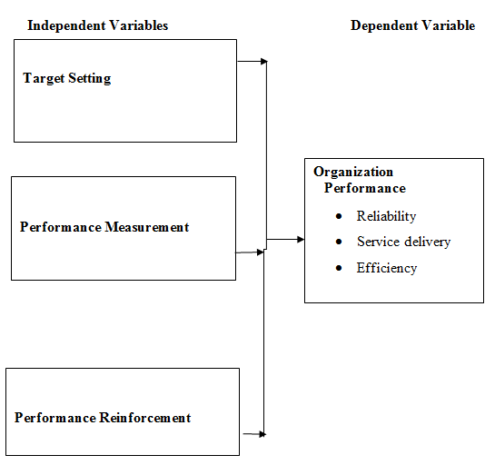 This article seeks to study the influence of target setting, performance measurement and performance measurement on organizational performance. This relationship will be tested on a general regression equation as posed in the following model.