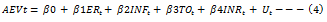 lnAEVt = βo + β1lnAGLt+ β2lnOERt+ β3lnREPt + Ut ——— (2)