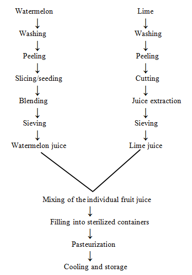Thus, the objective of this work was to determine the physicochemical, sensory properties and microbial qualities of pasteurized mixed fruit juices produced from blends of watermelon and lime fruits.