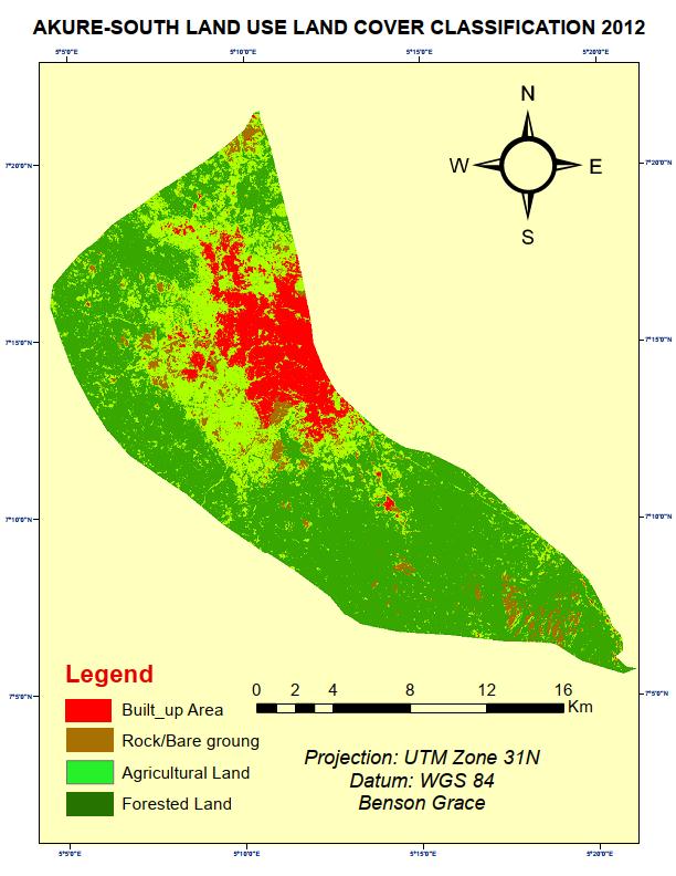 Figure 7: Land Use Land Cover Map of Akure South LGA in 2012.