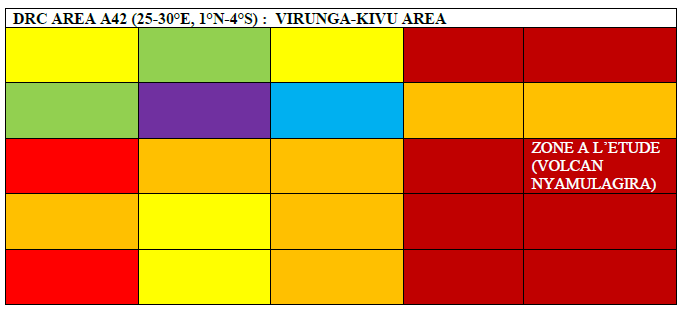 Figure 27: Distribution of colors (module) in the Nyamulagira grid zones