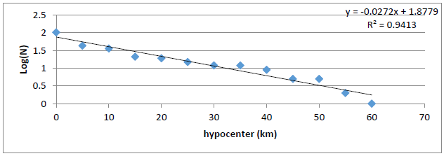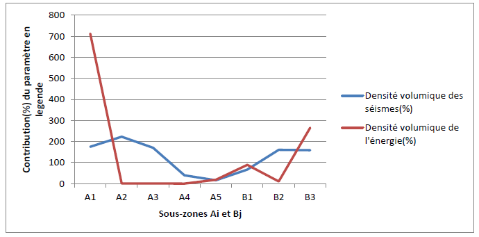 The curve below depicts the distribution of earthquake density and energy in each sub-area.