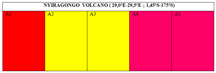 Analysis of these three structures in the Democratic Republic of Congo (10°E-35°E; 6°N-14°S), the Virunga area (25°E-30°E; 1°N-4°S°), and the area around Nyiragongo volcano (29.00°E-29.50°E; 1.45°S-1.75°S) reveals the following: