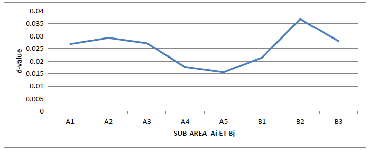 j takes the seismic level values (bj) of the horizontal sub-areas (Bj).