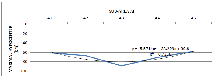Figure 9: Geoseismic signature of the Virunga area vertical sub-areas (Ai)