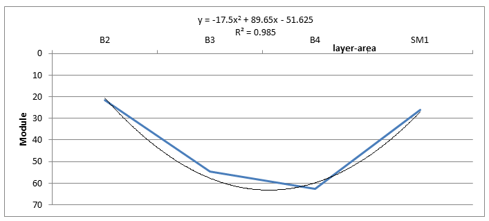 From West (A1) to East, the modulus decreases (A5),