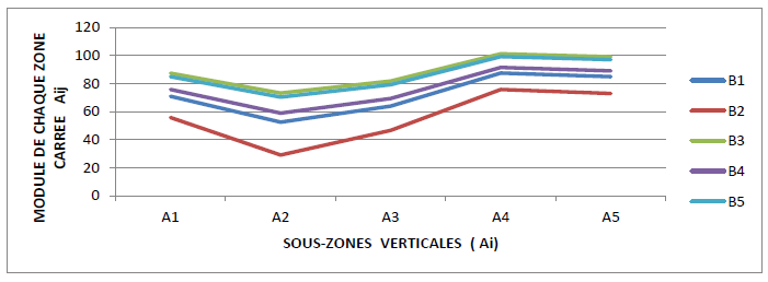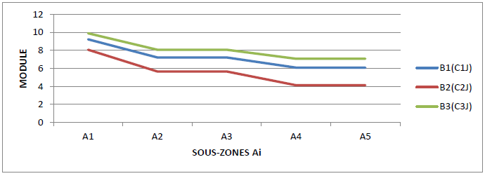 The results of the above table, particularly the use of the color code, leads to the characterization of the grid-zones in the form of seismic zoning (Figure 27), thus highlighting four groups (Table 11):