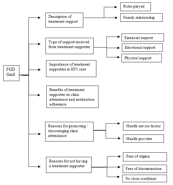 The emerging themes from responses of the study participants on the type of support that they received from their treatment supporters were financial support, emotional support and physical support. Also concerning the response on the importance of having a treatment supporter in HIV care, all the participants in the group that had treatment supporters gave affirmatory responses while majority of the participants in the group that did not have treatment supporters gave contradictory answers. Also majority of the respondents in the group that did not have treatment supporters said they did not think there was any support they could receive from a treatment supporter. This response contrasted with the responses of the participants in the treatment supporter group who stated the myriad of support they received from their treatment supporters.