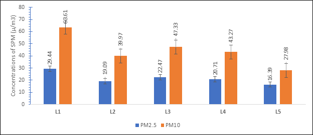 The PM2.5 (fine particles) poses a greater risk than PM10 (coarse particles). The surface area to volume ratio of PM2.5 is significantly higher than that of PM10, which renders PM2.5 more dangerous, particularly when inhaled and gets into the bloodstream. Assessing the extent to which humans are exposed to air pollutants based on air quality monitoring is important for developing policy frame works, guidelines, regulations for their regulation to improve air quality and human health through controlled/reduced emission.