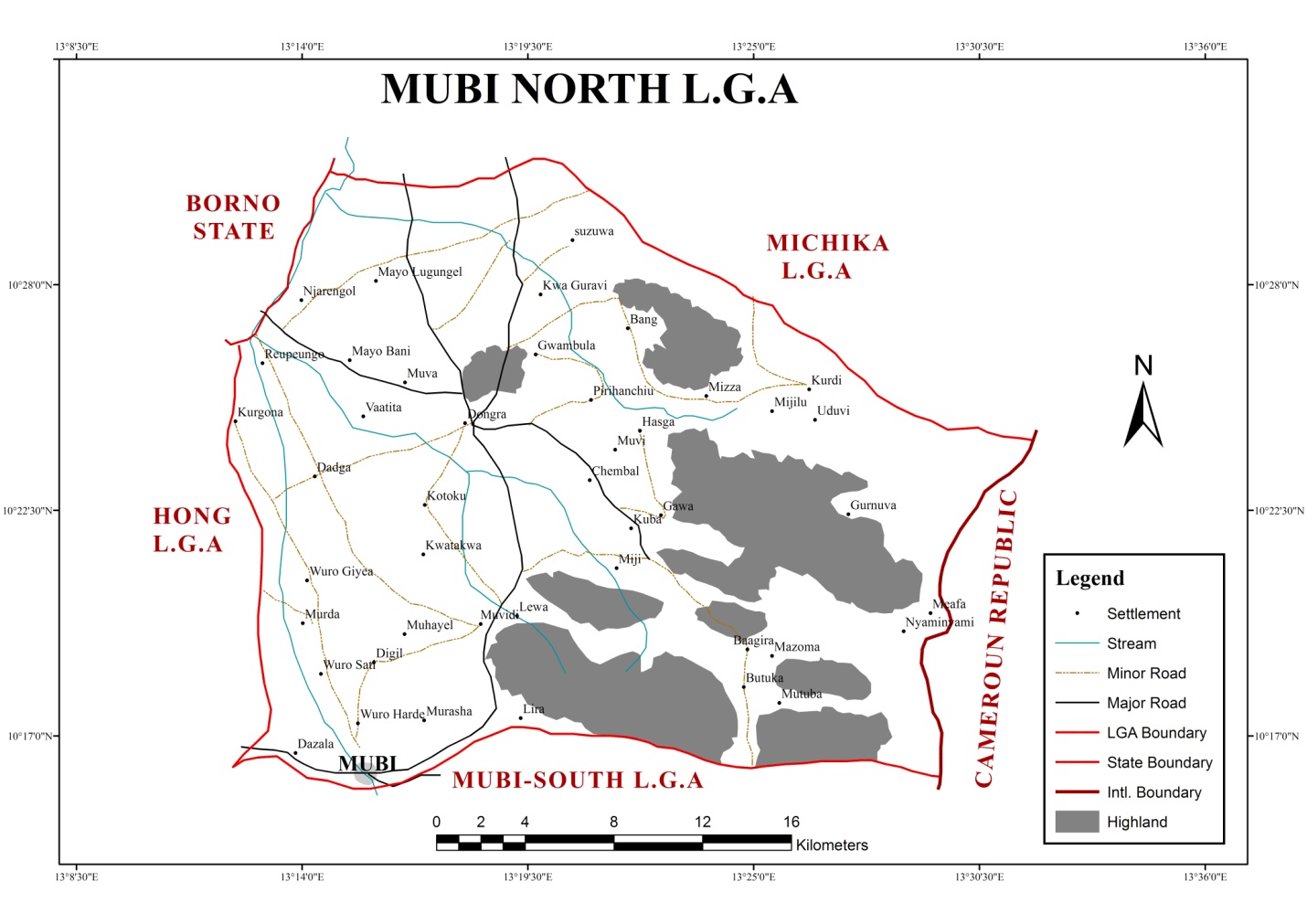 Fig.2.1. Map of Mubi North Local Government Area of Adamawa State