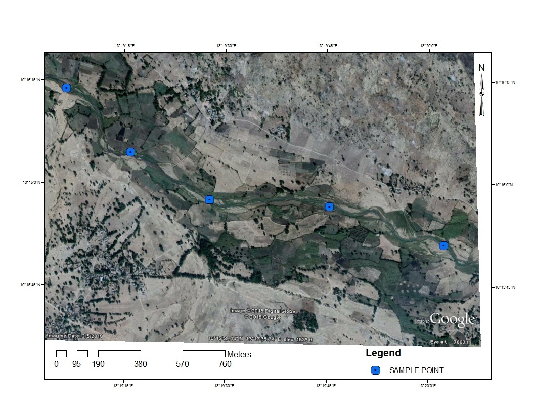 Water samples were collected at mid depth below the surface from the various sampling sites using plastic sampling bottles that were pre-washed with 10% HCl acid and also pre-rinsed with deionized water to avoid any contamination from metal and non-metal ions. Samples were collected at three separate locations from each sampling sites. These were then mixed up together to give one representative samples for that site. Samples were then taken to the laboratory stored in the refrigerator after addition of 2M of HNO3 in order to prevent microbial activities. To each of the 100cm3 of the sample were digested with 15 ml concentrated HNO3 solution and 10ml of 50% concentrated HCl in ratio of 2: 1 (Wufem et al., 2009). Samples were evaporated to almost dryness on a hot plate and then 7 ml of 50% concentrated hydrochloric acid was added and heated for 10 minutes. The digested samples were allowed to cool to room temperature. These were filtered through a Whatman 0.45μm filter paper and the final volume was adjusted to 50ml with double distilled water and stored for analysis. . The elemental concentrations of the digested water samples were carried out using Atomic Absorption Spectrophotometer (AAS) 210 VPG Buck Scientific Model.
