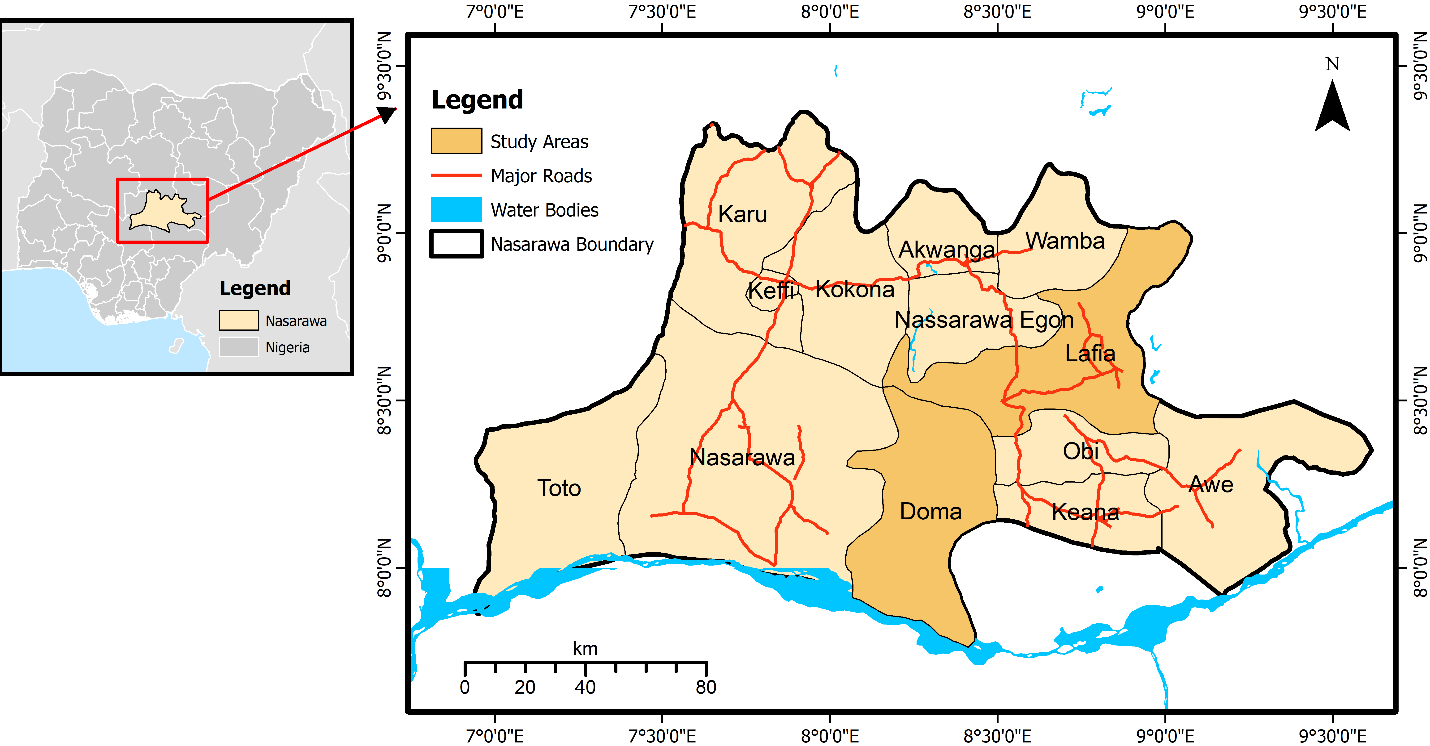 Figure 1: Map of Nasarawa state Nigeria showing the study areas